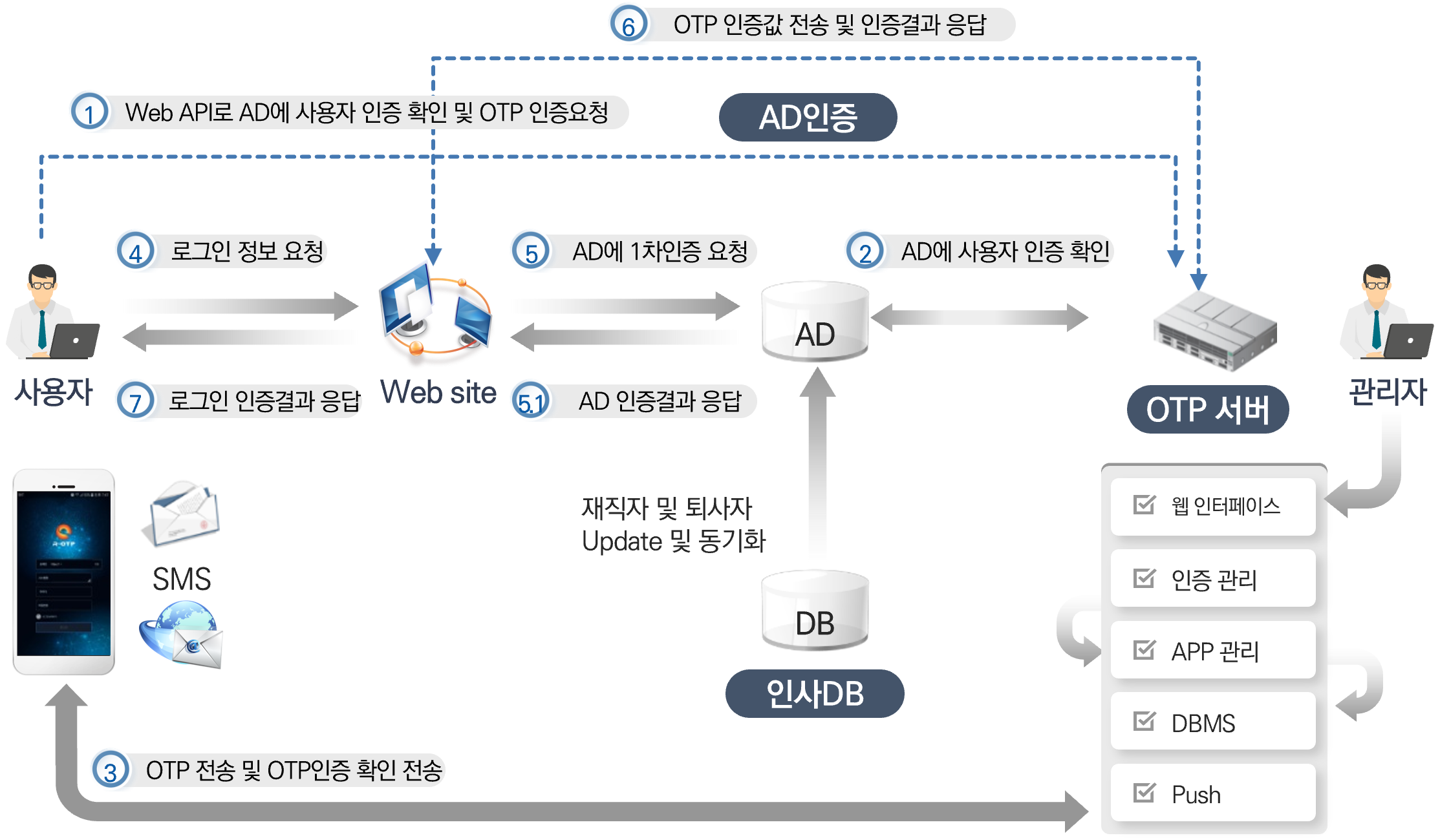 ´ëü ÀÎÁõ¼ö´Ü Á¦°ø (SMS, E-Mail, īī¿ÀÅå) ¹× ´Ù¾çÇÑ ÀÎÁõ¼¹ö ¿¬µ¿ Áö¿ø(DBMS, AD, LDAP) ÆíÀǼºÀ» Á¦°øÇÕ´Ï´Ù.