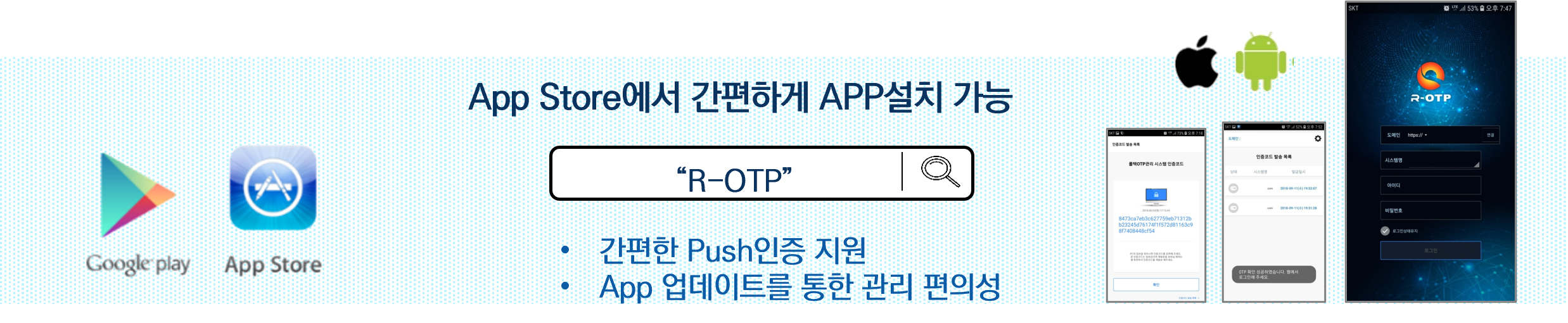 R-OTP´Â Google Play store ȤÀº iOS ¸¶ÄÏ¿¡¼ APP°Ë»öÇÏ¿© ¼Õ ½±°Ô ´Ù¿î¹ÞÀ¸½Ç ¼ö ÀÖÀ¸¸ç,